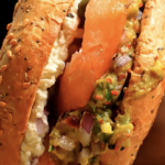 Unterhälfte mit Gewürzgurken-Guacamole bestreichen.